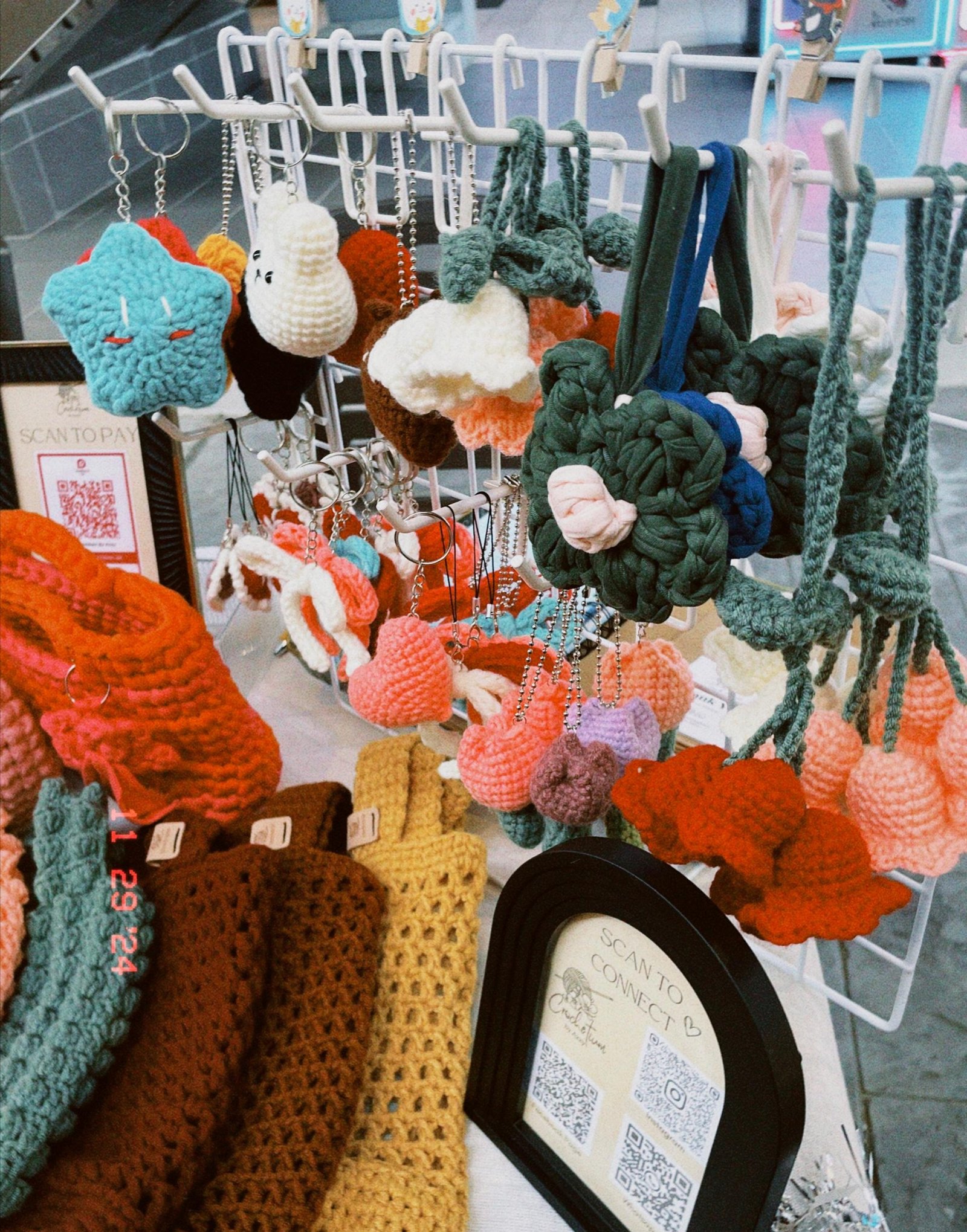 Photo shows the crochet items that Lovyna makes and gives away as Christmas gifts.In this…