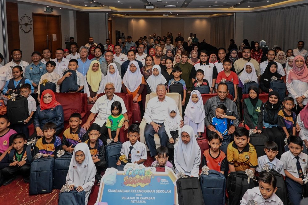Fadillah (seated, fifth right) in a group photo with the recipients during the event. The…