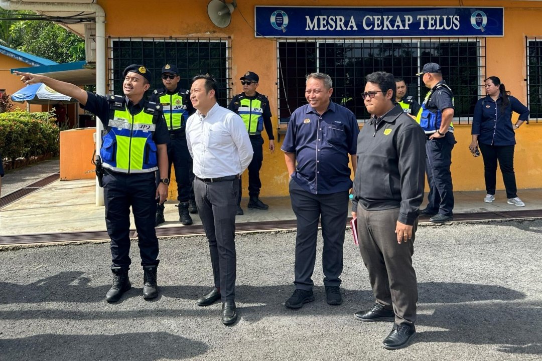 Kong (second left) is being briefed by a JPJ officer at the enforcement station near…