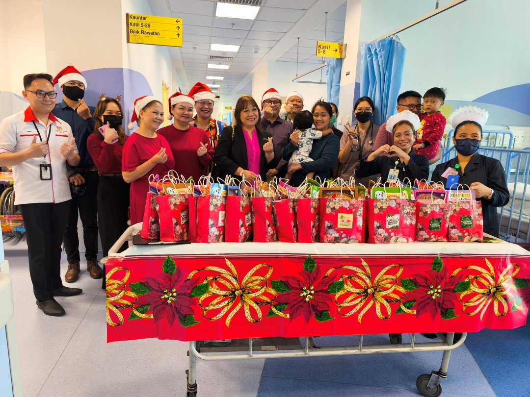 Choo (seventh left) and her team pose with paediatric patients, their parents and nurses on…