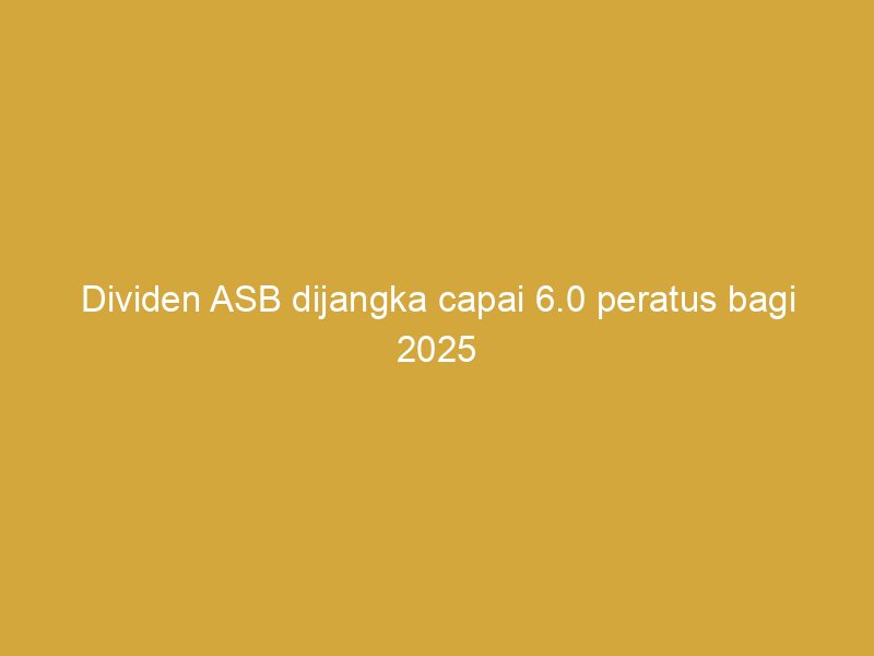 Kuala Lumpur: Agihan pulangan dividen ASB (Amanah Saham Bumiputera) bagi tahun kewangan 2025 diunjurkan boleh mencecah 6.0 peratus, merangkumi gabungan dividen dan bonus, didorong oleh prestasi ekonomi domestik yang semakin kukuh serta aliran masuk pelaburan asing memberangsangkan.