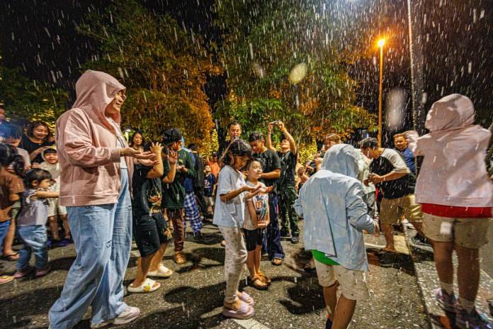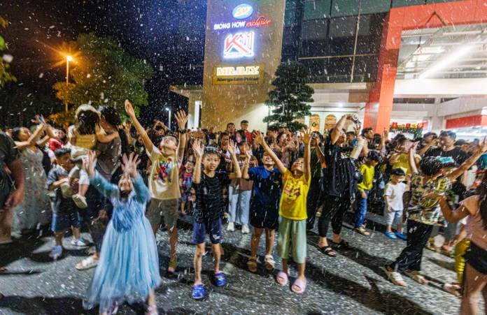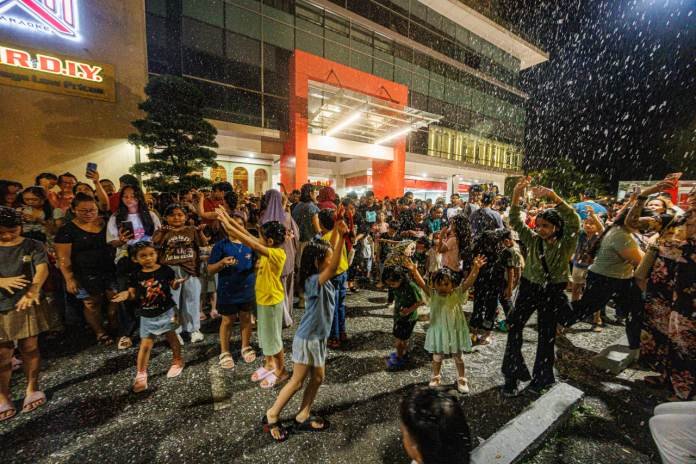 On the night of the event, children joyfully ran, jumped, and twirled beneath a gentle cascade of artificial snow, embracing the delight of a winter wonderland under Sarawak’s tropical night sky.