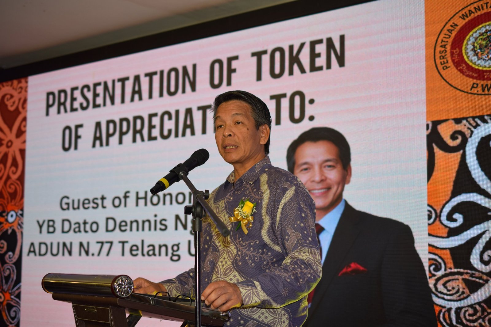 Dennis speaks at the PWKS annual dinner held in Kuching. — Photo by Roystein Emmor